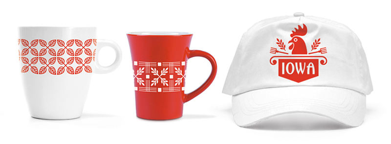 This is the example how Iowa themed illustrations can transform any standard item into a unique, locally made gift. This project received Gold ADDY® Award (presented by the American Advertising Federation).
